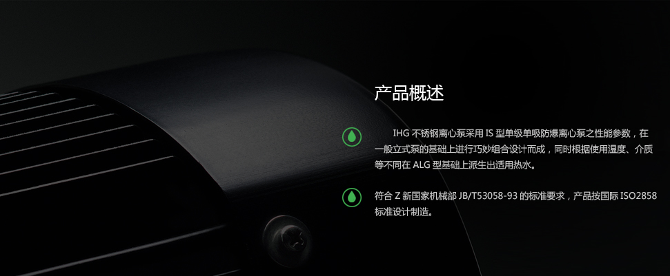 4. IHGB型立式不銹鋼離心泵供輸送不含固體顆粒,具有腐蝕性,粘度類似于水的液體,適用于石油、化工、冶金、電力、造紙、食品制藥和合成纖維等部門,使用溫度為-20℃ ~ 120℃。