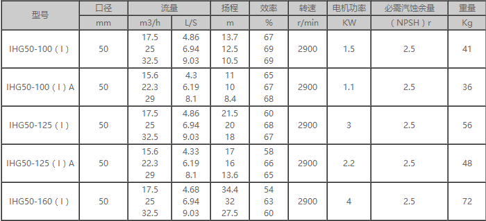 IHG不銹鋼離心泵型號參數分析表